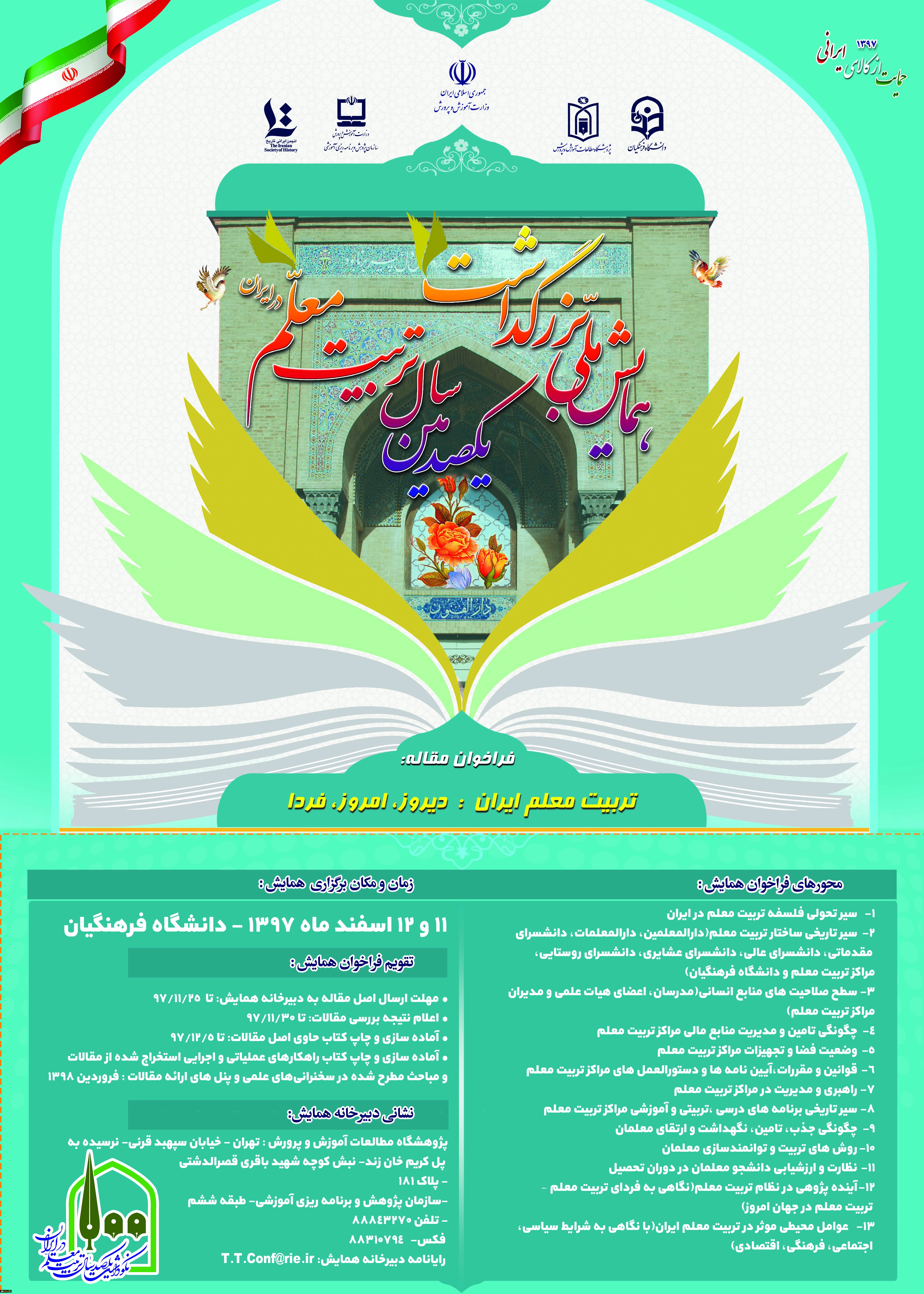 زمان و مکان برگزاری همایش: 11و 12 اسفند ماه 1397 دانشگاه فرهنگیان